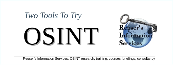 That’s it for this week. Interested in more tools and sources for OSINT? Have a look at the Internet Resource Discovery Toolkit at http://rr.reuser.biz.