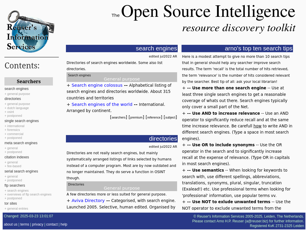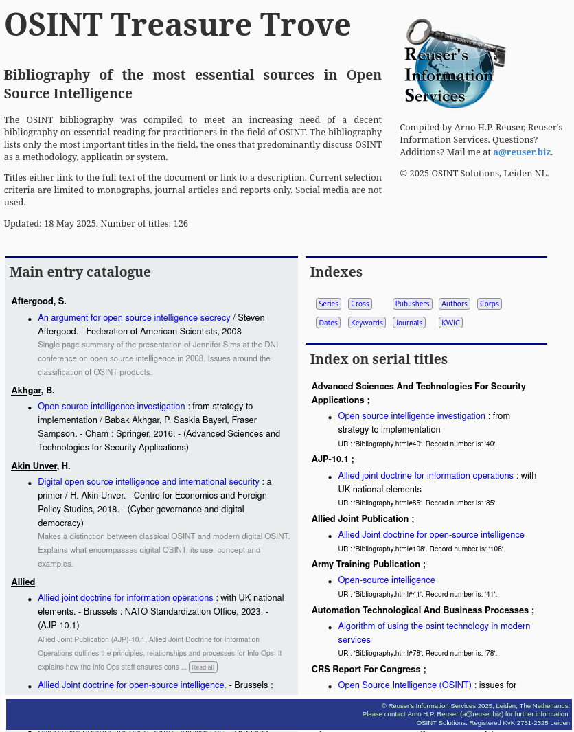 Key to any OSINT research is to know your sources. The toolkit started with the list of reference works issued at the library academy in the 80ies of the previous century, then grew via floppy disc, diskette, simple text files, XML to a product of a MySQL database.
